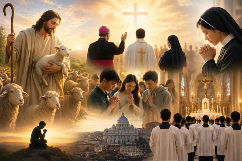 이번 주에는 이분들께 감사드리며, 이분들을 위해 기도합시다. 성사를 집전하시고 우리에게 주님을 전해주시는 신부님들, 교구를 이끄시는 주교님들, 그리고 헌신적으로 봉사하시는 수녀님들을 위해 기도합시다. 이분들은 우리 가운데 계신 착한 목자입니다.
